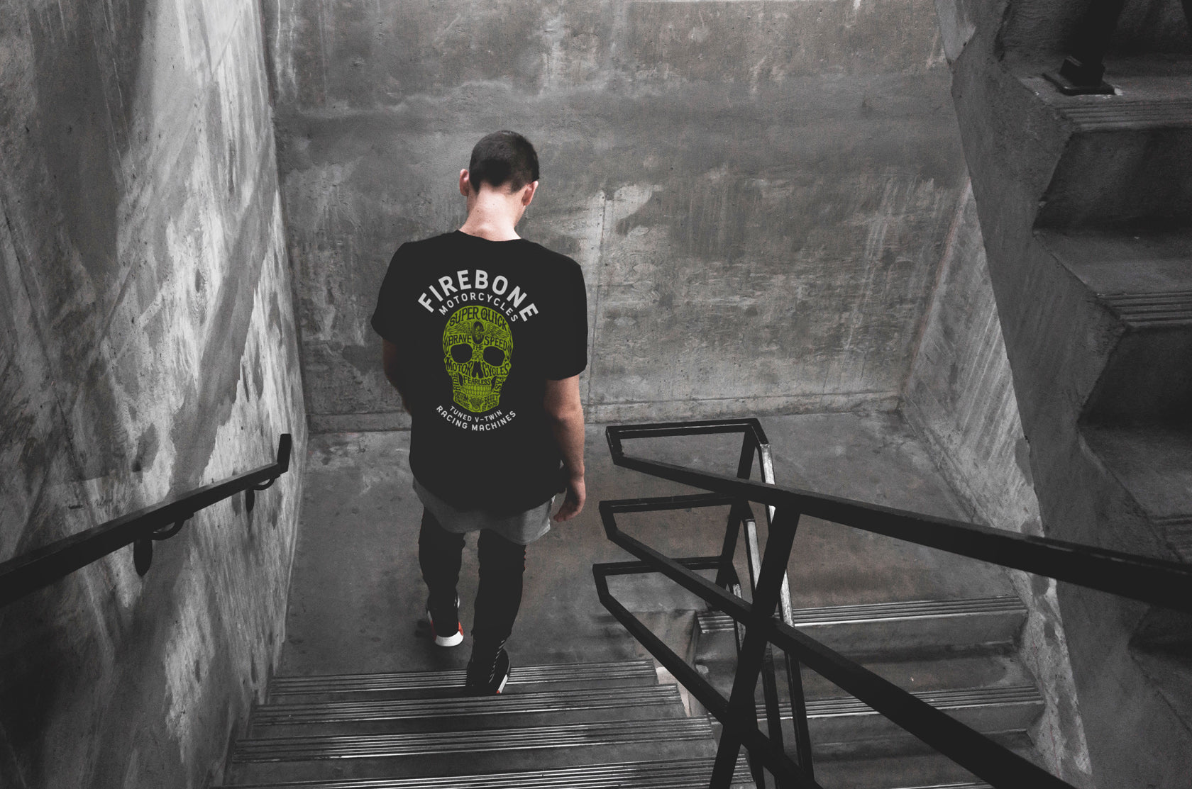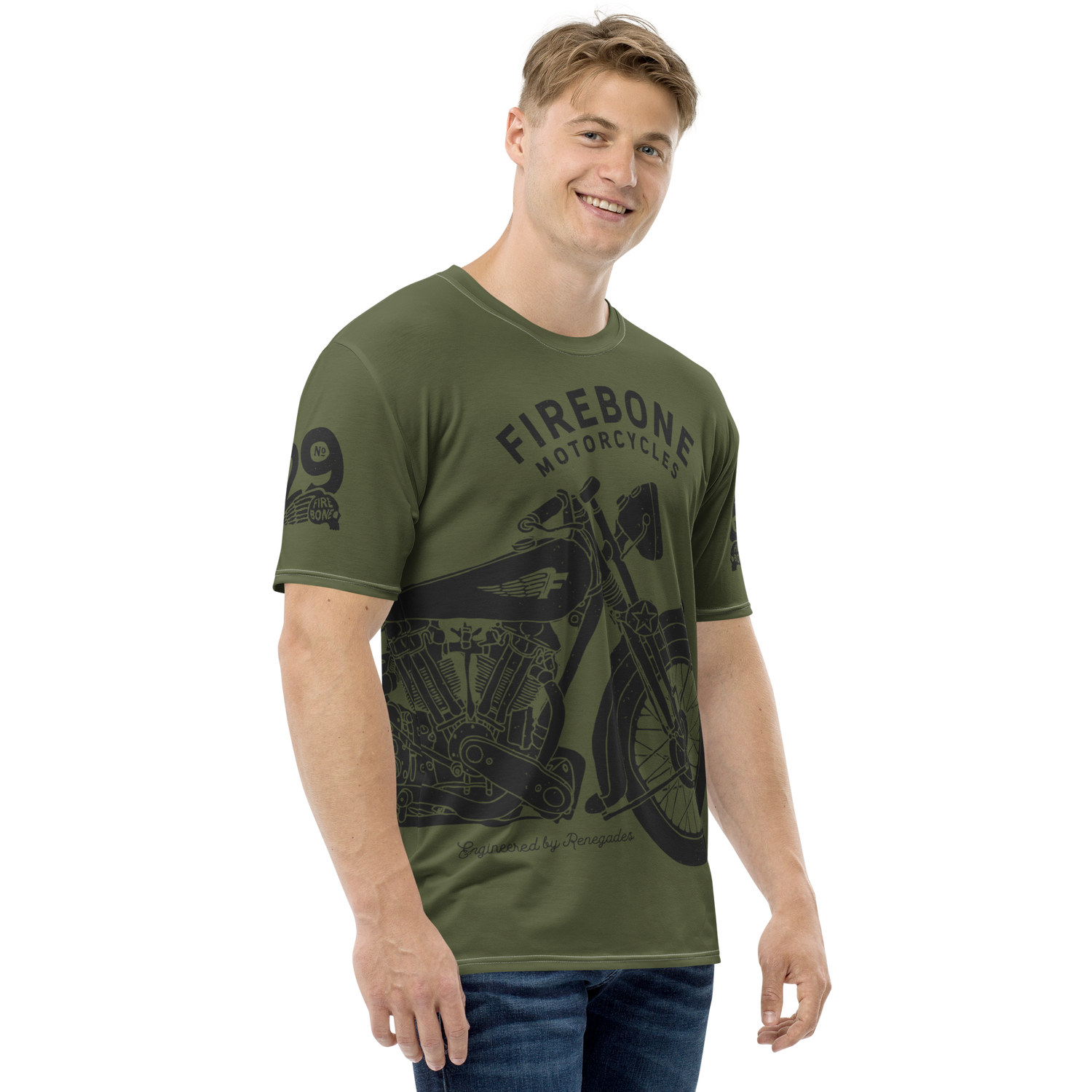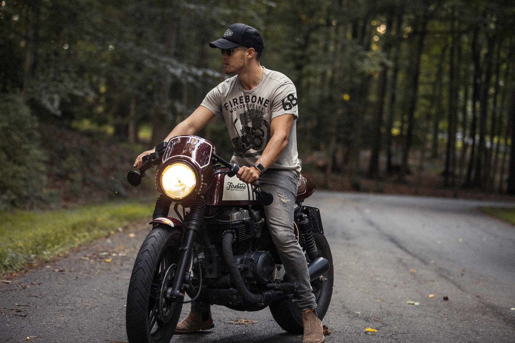 Superior Vintage engineThis custom design Triumph engine with the iconic kickstart was hand illustrated and is engraved with words along the exhaust pipe, the Firebone branding lozenge, and our skull and wings motif on the engine components. The angled 68 adorns the sleeve.